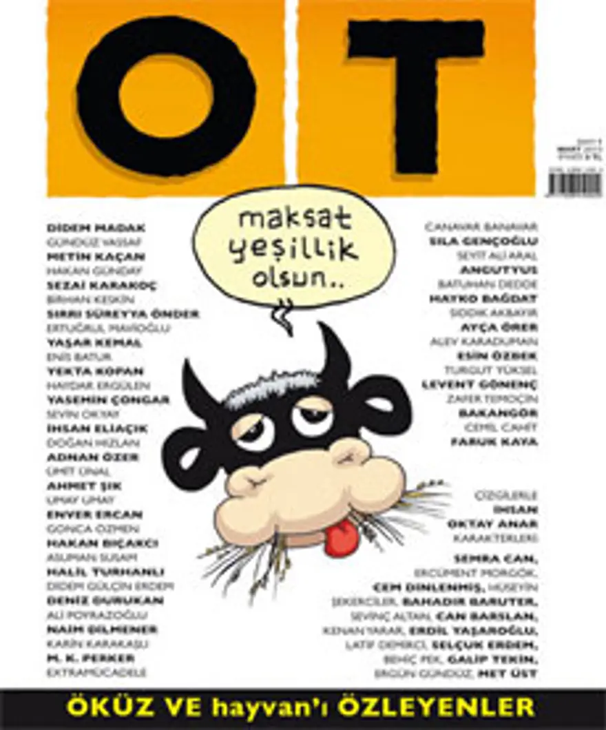 Her dergiyi çıkardığımda bu benim son dergim gibi oluyor. Başbakanın lafına gönderme yaparak: "Öküz çıraklık, Hayvan kalfalık, Ot da ustalık eserim" dedim de işin esprisi o. Penguen’i kurduğumuzda da “son dergimiz bu buradan emekli oluruz” dedik. Bu işin emekliliği yok da… Ot, tamamen Öküz okurlarının büyümüş hallerinin ittirmesiyle olan bir şey. Ben Met Üst’ü de onun için çıkardım. Bunu haksızlık olarak da görüyorum, insanları bir şeye alıştırıyorsun sonra bırakıyorsun ya bırakma ya hiç yapma. Öküz ve Hayvan bizim dışımızda gelişen olaylardan kapanmalar oldu. Ot da inşallah olmayacak. İçinden dergiler çıkabilir ki keşke olsa. Dışarıdan hep bölünmeler olarak gördükleri, bizimse arınmalar diye sevindiğimiz yeni çocukların çıkması maddi olarak çok yıpratıcı ama yolun açılması olarak iyi gördüğümüz bir şey. Ot, son dergi ama her an her şey de olabilir.