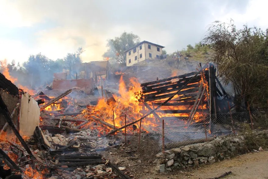 Bölgenin coğrafi yapısının zorlu olduğuna dikkati çeken Çakır, "Bölgemizdeki yerleşimin karakteristiği gereği çok yakın ve ahşap yapılaşma nedeniyle maalesef yangın 10 eve sirayet etti. Bu evlerimizin tamamı ahşap ve eski yapılar. Allah'a şükür, herhangi bir can kaybımız söz konusu değil. Hayvanlarımız kurtarıldı." dedi.