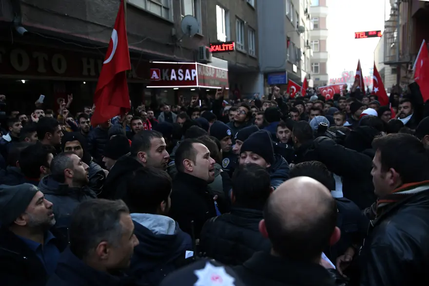 Vatandaşlardan bazıları, kalabalık arasındaki bir kişiye sert tepki gösterdi. Gerginliğin büyümesi üzerine polis ekipleri havaya ateş açtı.