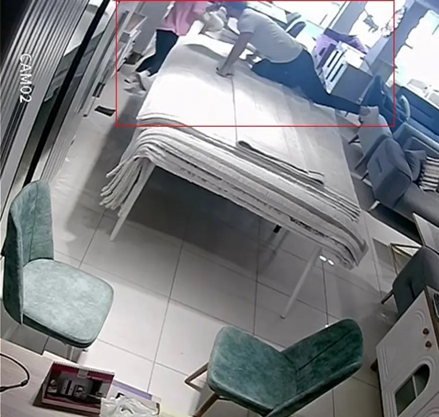 Yoldan geçen kadının olayı fark etmesi üzerine tedirgin olan Bilal Özkan'ndan kadın kaçarak kendini dışarı attı. Çevredeki vatandaşlar iş yerinde toplanmaya başlayınca şahıs kaçtı. O anlar iş yerinin güvenlik kamerası tarafından görüntülendi.