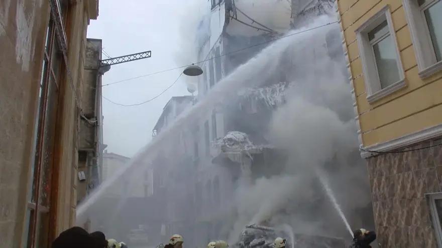 Kumkapı'da alev alev yanan 4 katlı metruk binada çökmeler yaşandı.