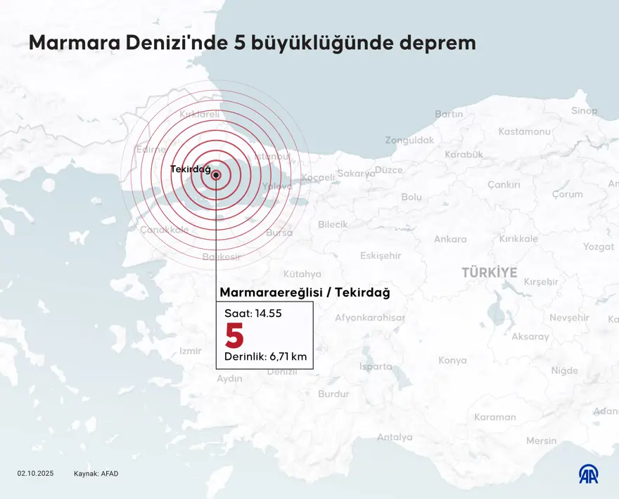 Marmara Denizi'nde 2 Ekim günü meydana gelen 5 büyüklüğündeki deprem başta İstanbul olmak üzere çevredeki şehirlerde panik yaşanmasına neden oldu.