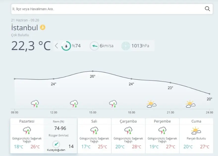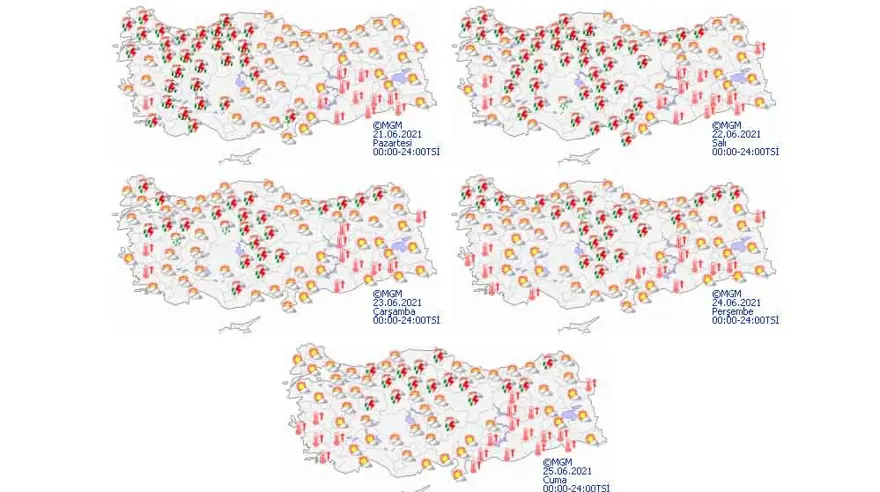 Meteoroloji'den son dakika haberi... Marmara'nın doğusu, İç Ege, Akdeniz, İç Anadolu'nun batısı, Batı Karadeniz bölgeleri ile Trakya'da bugün sağanak yağış bekleniyor. Meteoroloji'nin verilerine göre, İstanbul'da yağışlar 4 gün boyunca devam edecek. İşte 21 Haziran 2021 hava durumu...