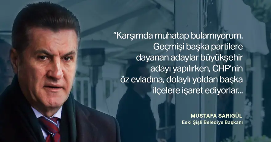 CHP'den istifa eden Mustafa Sarıgül, Şişli'den belediye başkan adayı olacağını duyurdu. Sarıgül, açıklamasında ''Yıllardır çalışmaktan, koşmaktan, mücadele etmekten yorulmayan ben, beklemekten ve bekletilmekten yoruldum'' ifadesini kullandı.
