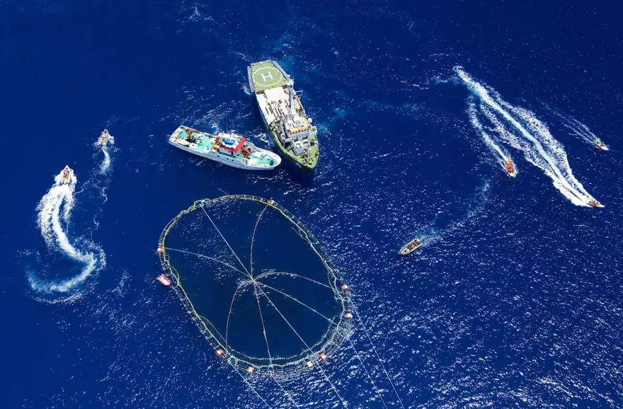 Greenpeace, tehlike altındaki mavi yüzgeçli orkinosları kurtarmak için, orkinos kafesinin ağını keserek orkinosları serbest bırakmaya çalıştı. Kızgın balıkçılar bot ve teknelerle eylemcileri engellemek üzere harekete geçti.
