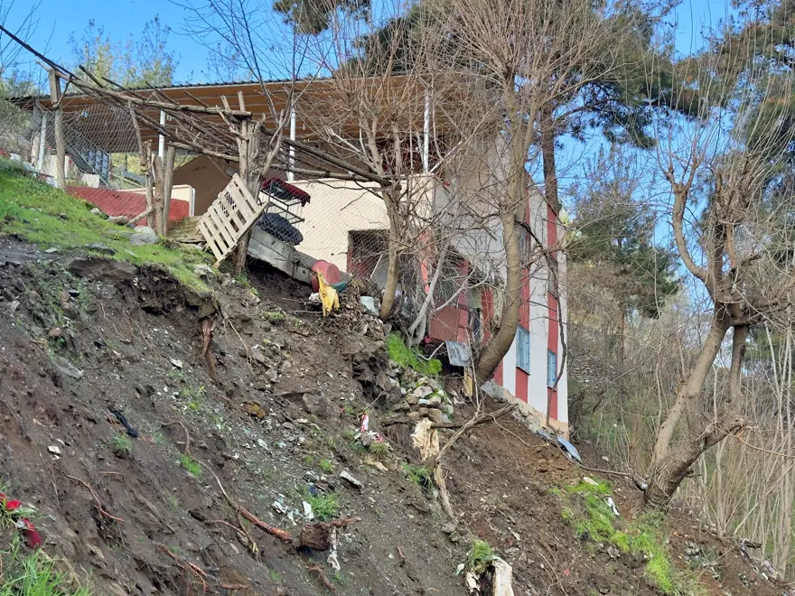 Osmaniye'nin Bahçe ilçesi Çamlıca Mahallesi'nde Yılmaz Örken'e ait yamaca kurulu 2 katlı müstakil evin temelinde, iki gündür etkili olan yağmur sonrası kayma meydana geldi.