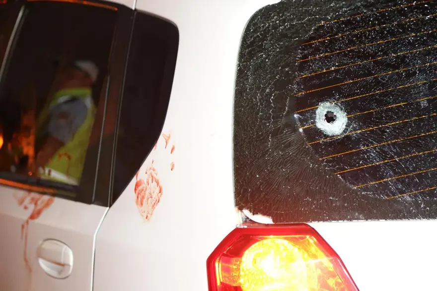 Polis ekipleri, otomobilde inceleme yaparken, arka camda bir mermi deliği olduğu görüldü.