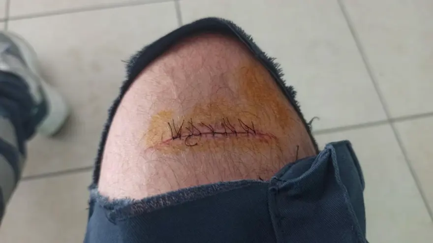Tedaviye alınan sağlık çalışanı Kaan Kanat'ın dizine 10 dikiş atıldı.