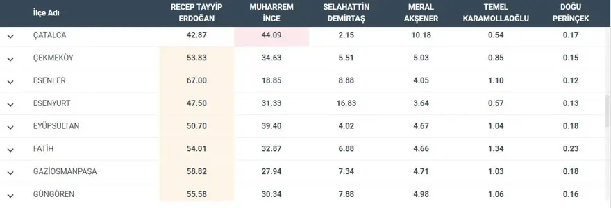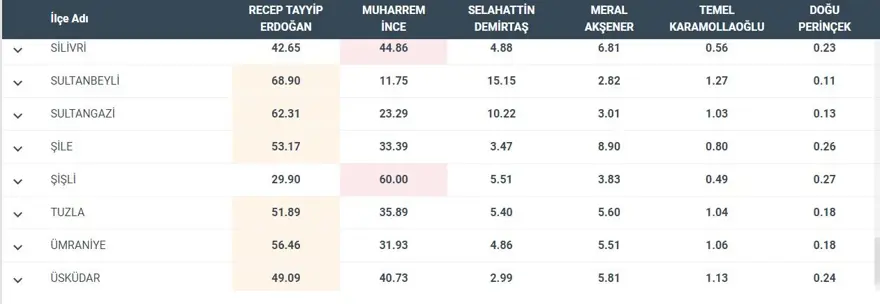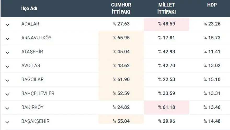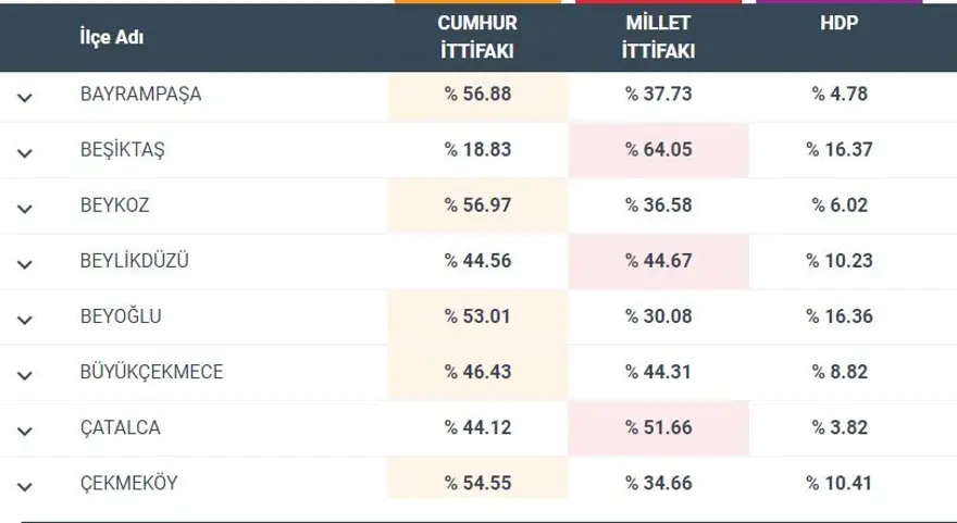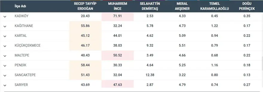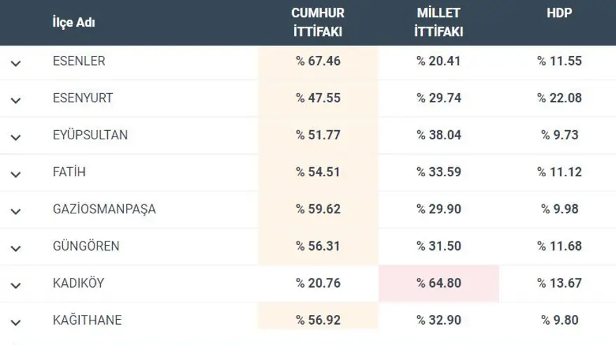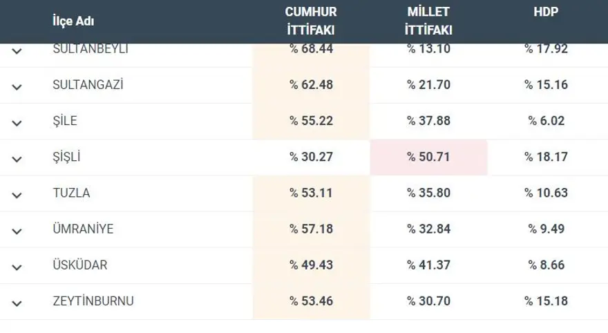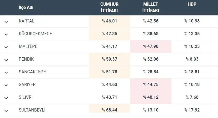 İşte İstanbul'un ilçelerinde oy oranları