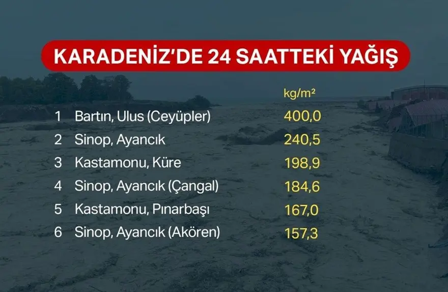 Karadeniz Bölgesi'nde sellere yol açan şiddetli yağışlar, cumartesi gününe kadar devam edecek. Şİddetli yağışlar bugün Sinop-Samsun'ta etkili olacak. Yarın ise Trabzon-Rize kesiminde yağış var. Uzmanlar bölge için sel ve heyelan uyarılarını sürdürüyor.