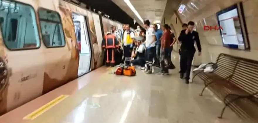Durağa yanaşan metronun çarptığı kadın ağır yaralanırken, istasyondaki görevliler durumu polis, sağlık ve itfaiye ekiplerine bildirdi.
