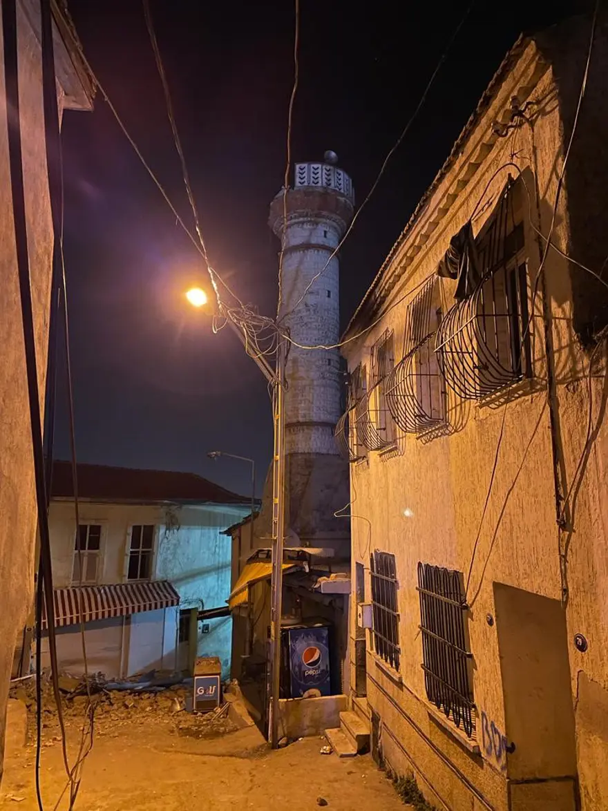 Depremde Konak ilçesindeki Selahattinoğlu Camisi'nin minaresi yıkıldı.
