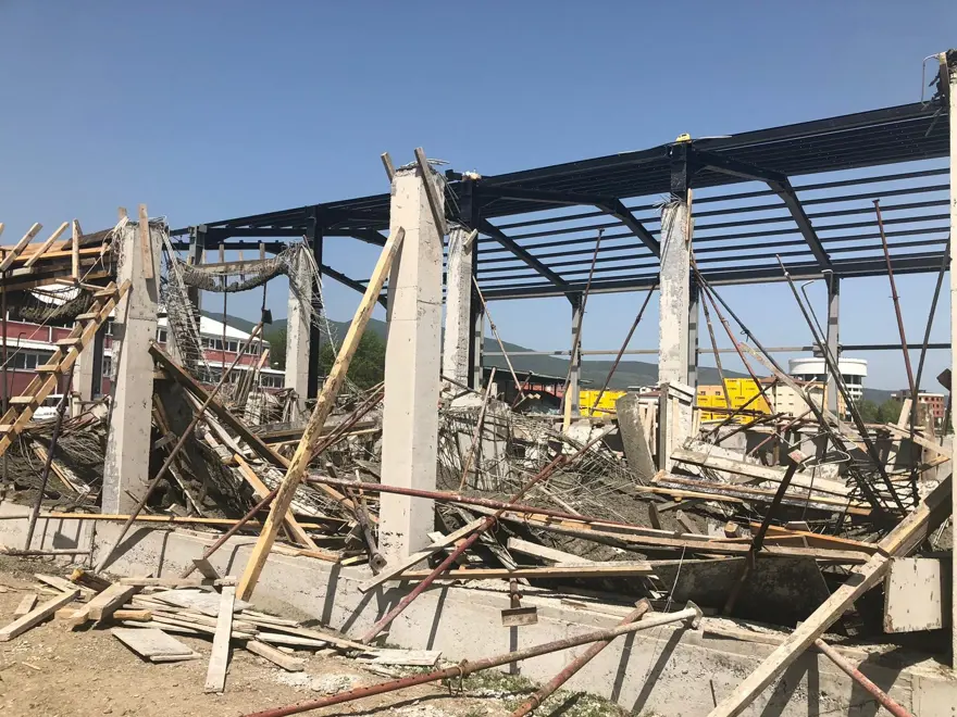 Zonguldak'ın Çaycuma ilçesi Yeni Mahalle'deki spor salonu inşaatında çalışan Hasan Karamazak, iskelenin çökmesi sonucu tahta kalıpların altında kaldı.
