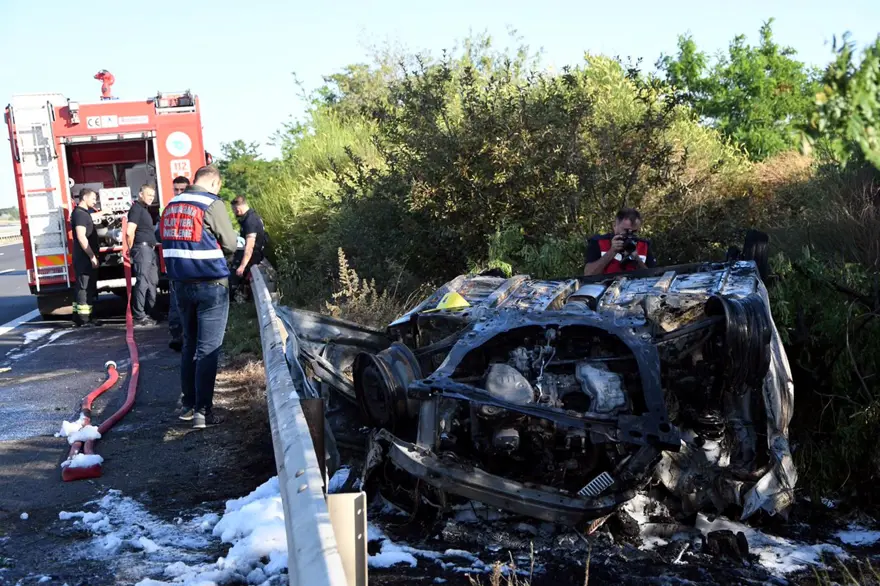Tekirdağ'ın Ergene ilçesi TEM Otoyolu'nda kontrolden çıkarak bariyere çarpan otomobil alev yandı. Kazada sürücü Yusuf Çelik hayatını kaybetti.
