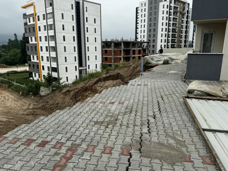 Bursa'da site inşaatı için kazı yapılırken iki apartmanın otoparklarını çevreleyen istinat duvarında kısmi çökme meydana geldi. Çökmenin ardından otoparklarda toprak kayması da yaşandı.