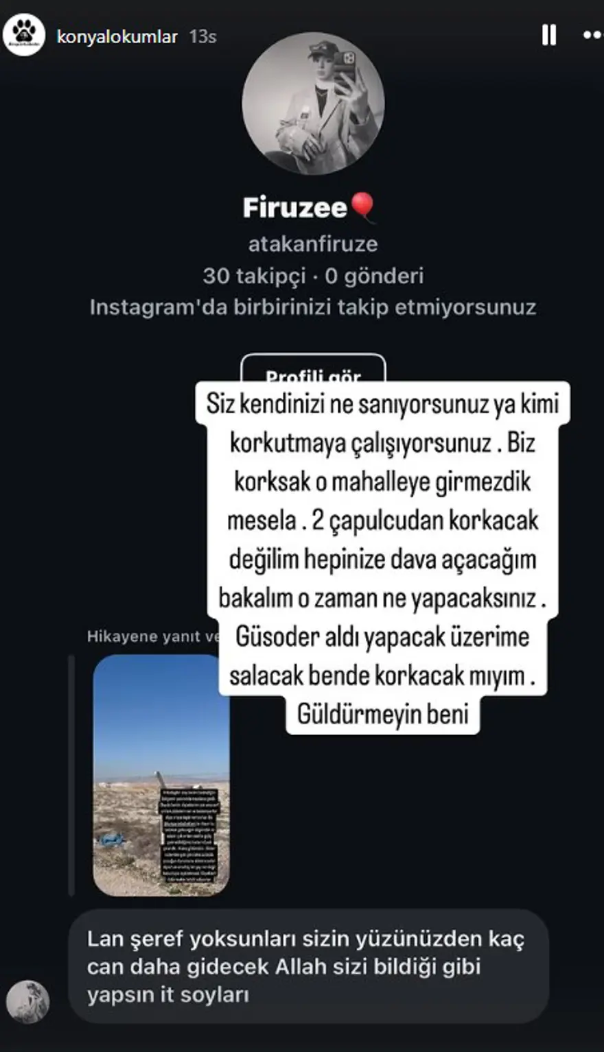 Bu paylaşımlar üzerine çok sayıda tehdit aldığını belirten dernek yetkilisi paylaşımlarla ilgili yasal işlem başlatılacağını aktardı.