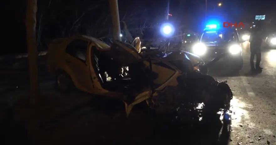 Taksi önce kaldırımda bulunan bir ağaca ardından da sokak lambası direğine çarptı.