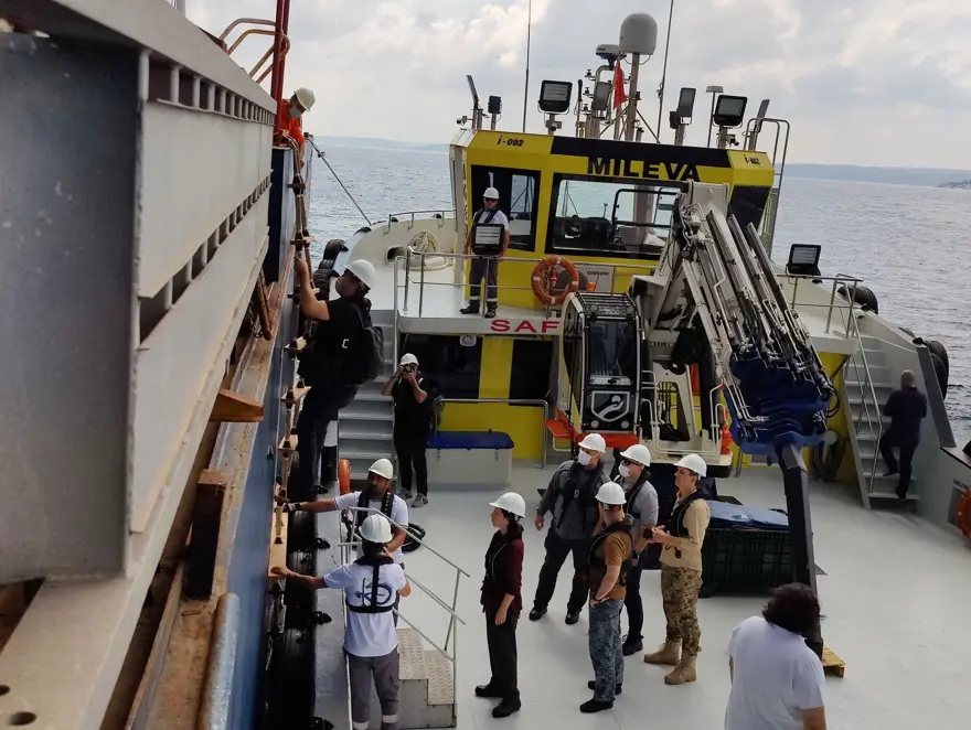 Denetim ekibi gemiye çıkarken
