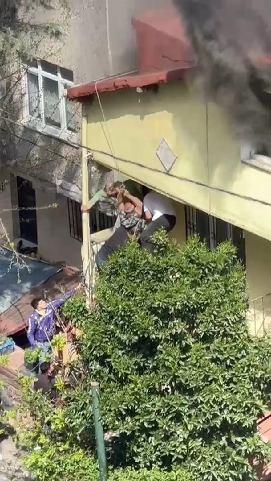 Ümraniye'de ev yangını: Mahsur kalanlar halatla kurtarıldı