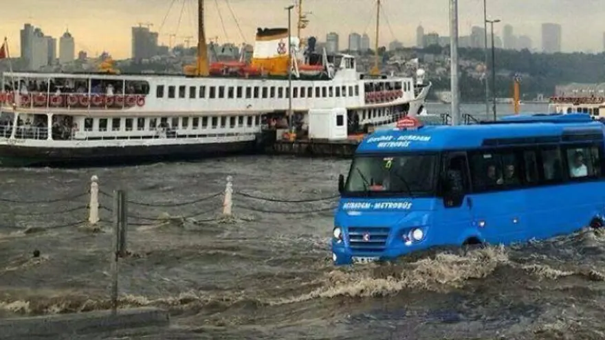 Üsküdar'da yağışlar denizle karanın birleşmesine neden olmuş, vapur ve minibüsün aynı kare içindeki fotoğrafı sosyal medyada oldukça ses getirmişti.