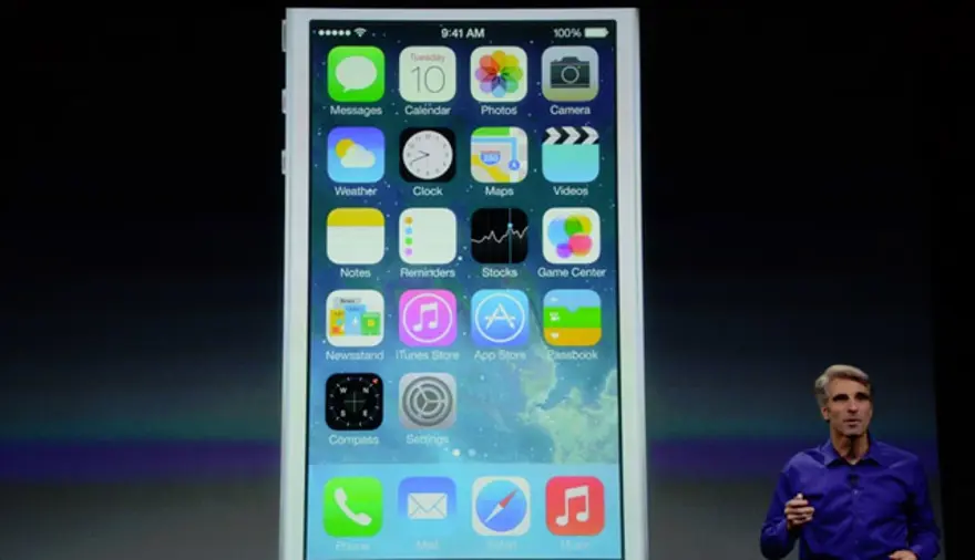 20.10: Cook'un ardından sahneye Apple'ın yazılım geliştirme birimi kıdemli başkan yardımcısı Craig Federighi çıktı. Federighi, iOS 7'nin 'kısa sürede dünyanın en popüler işletim sistemi olacağını' söyledi.