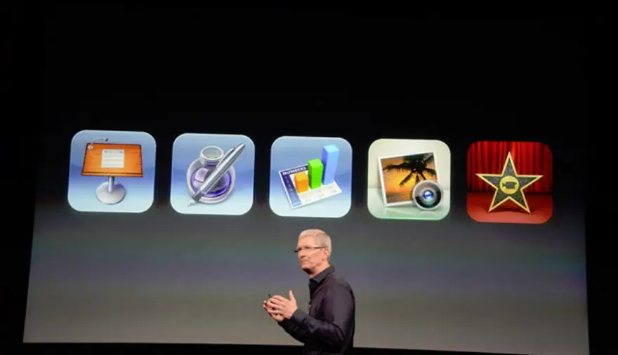 'iOS cihazlarının içerik yaratmak için mükemmel olduğunu' belirten Cook, iWork'un kullanıcıların üretkenliğini artıracağını, iPhoto ile iMovie'nin ise yaratıcılıklarını geliştireceğini belirtti.
