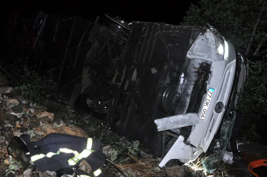 Antalya'dan Mersin yönüne giden Nihat Taşdemir yönetimindeki 77 DK 056 plakalı yolcu otobüsü, Antalya Gazipaşa'ya bağlı Zeytinada Mahallesi D-400 Karayolu'nda girdiği virajda saat 01.30 sıralarında sürücüsünün kontrolünü yitirmesi sonucu 25 metreden yuvarlandı.