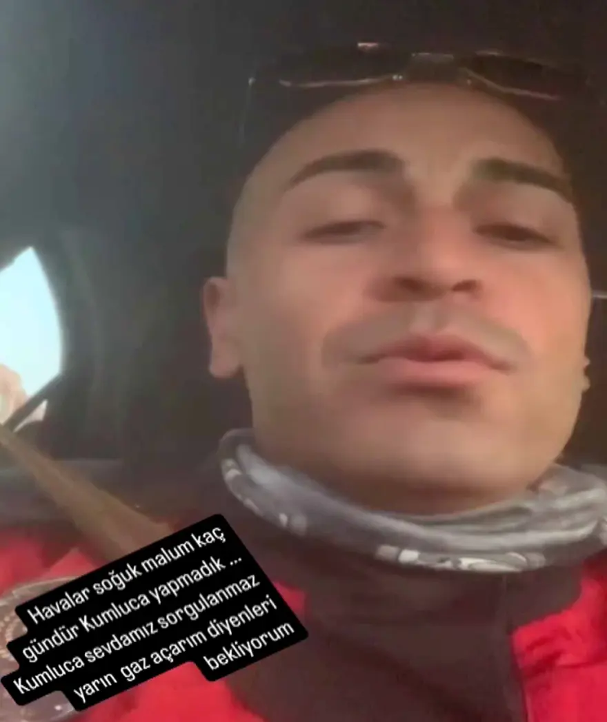 Cuma Şimşek’in araç kullanırken çektiği görüntüsünü, “Havalar soğuk malum, kaç gündür Kumluca yapmadık. Kumluca sevdamız sorgulanmaz. Yarın gaz açarım diyenleri bekliyorum.” notuyla paylaştığı görüldü.