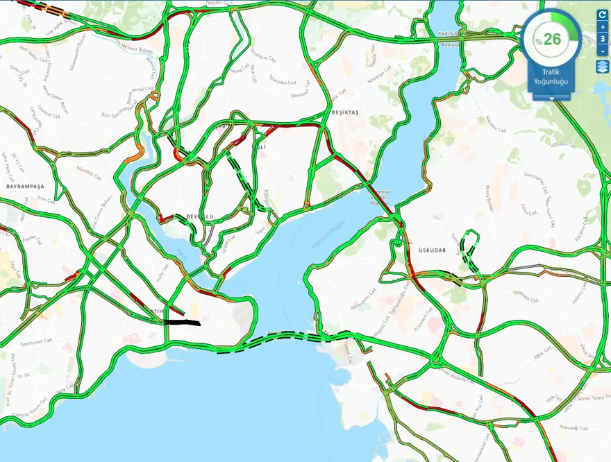Kaza nedeniyle 15 Temmuz Şehitler Köprüsü ile bağlantı yollarında uzun araç kuyrukları oluşurken, araçların kaldırılmasıyla trafik normale döndü.