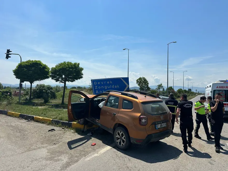 Zonguldak'ta A.T.'nin (57) kullandığı otomobil ile Hasan Durmuş (69) idaresindeki otomobil, Çaycuma ilçesi sanayi sitesi ışıklar mevkisinde çarpıştı.