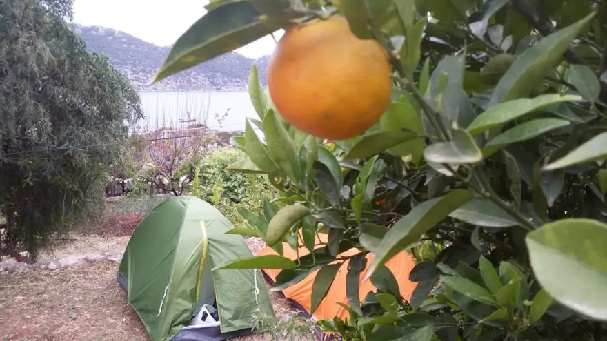 Daha sonra da adam başı 10 TL verip Mehtap Pansiyon’un portakal, dut ve yenidünya ağaçlarıyla dolu bahçesine çadırlarımızı kurduk. Bazı arkadaşlar ise çadır kurmayıp pansiyonun sahibi Saffet Bey’in önerisiyle bahçedeki sedirlerde uyku tulumu ile yatmayı tercih etti.