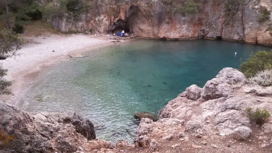 Yol üzerinde ikinci büyük molayı ise Limanağzı’ndan yaklaşık 4 km uzakta olan bu koyda verdik. Özellikle son etabı denize doğru uzanan kayalıklarda yapılan yürüyüş bizi oldukça zorladı. Ama aşağıdaki koyu görünce bütün yorgunluk gitti. Hemen çantaları bir ağaç dibine bıraktık, isteyen dinlenip bir şeyler atıştırdı, isteyen kendini buz gibi denize bıraktı.