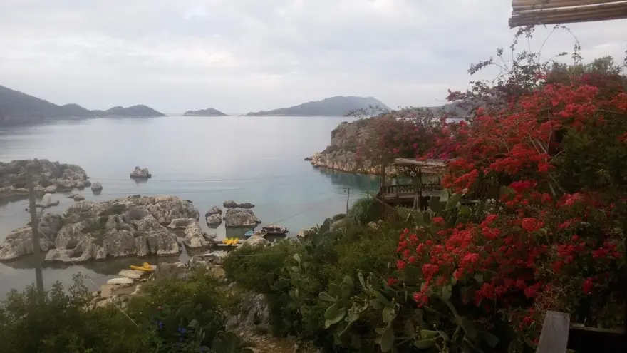 Burada bir uyarı daha yapayım; Boğazcık’da size "Aperlai-Üçağız bölgesini yürümenize gerek yok, gelin biz sizi araba ile bırakalım" diyen üç kuruşun peşindekilere kanmayın, mutlaka o inişi yapın. Eğer yapmazsanız Aperlai’deki Purple House‘u nasıl göreceksiniz?