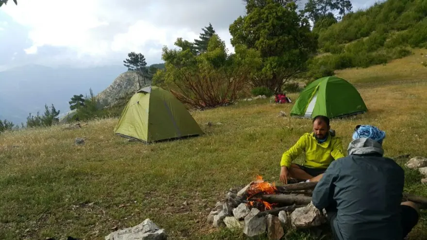 Saat 14.00 sularında ulaştığımız zirvede çadırlarımızı kurduk ve etrafı keşfe çıktık. Kamp alanının 100 metre aşağısında barakası olan Çoban Celal Dayı’dan yufka ekmekleri ve nar suyu da alınca keyfimiz tastamam oldu. Yine gece kamp ateşi yakıldı, aşağıda aldığımız sucukları peynirleri yufka ekmeğine sarıp mükellef bir yemek yedik.