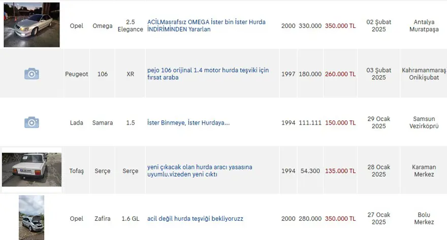 Yıllardır gündemde olan hurda araç teşviki ile ÖTV'siz otomobil alımı TBMM'ye sunulan kanun teklifiyle yeniden konuşulmaya başlandı. Yaşı büyük araçların trafikten çekilmesi amaçlanan teklifte hurda teşviki olarak ÖTV'siz araç satışı öngörülüyor. Haberleirn sıklaşmasıyla birlikte ikicni el ilanlarında 25 yaş üstü araçların fiyatları ve ilanları arttı.